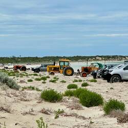Home of the King George Whiting and just this current week there have been several sightings of sharks in the area. There are many holiday homes [shacks] in this area and lots of old tractors which weLæs mere