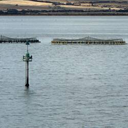 Sailing out of Port Lincoln, we come quite close to the many fish farms out in the bay where fingerlings are raised and then grown as part of the sustainable aquaculture industry.