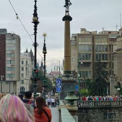 The Czech Bridge is very busy with trams, cars and pedestrians. A coach parking area and the train station are located right before you cross the bridge. It’s very ornate and as we cross over, weBaca lagi