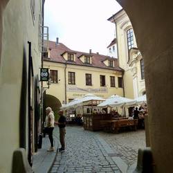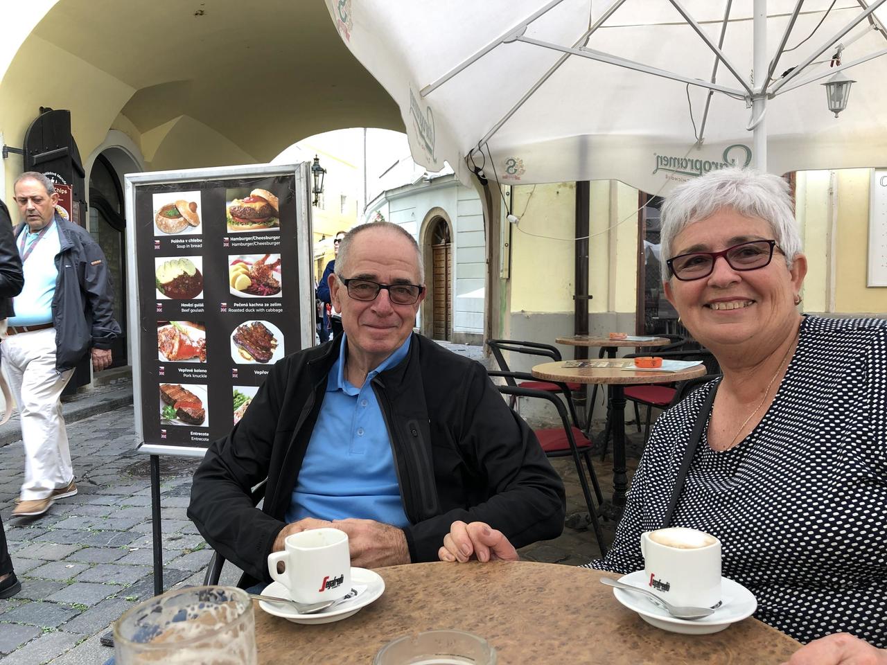 Just near the Astronomical Clock, we wind through an alley to a quiet courtyard set amongst the surrounding old town buildings. We have coffee first with Julie and Mick and come back later for spinachBaca lagi