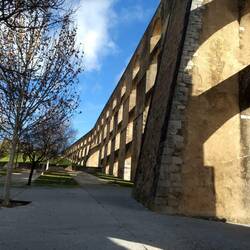 This amazing 6 km (3.7 m) long aqueduct, classified as World Heritage Site in 1910, took more than 120 years to build and was finished in 1622. It has huge cylindrical buttresses and a series of arches that reach 40m (130’) metre in height. We stood directly under it and looked up. Wow! 40 m. high! And with a crazy man taking photos? Yikes.