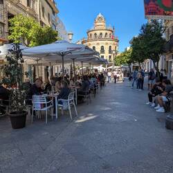 We opted out of visiting the cathedral as the line ups for entry were very long. Maybe another time. Maybe…We have seen a lot of churches! One interesting fact though… there were columns and chains around the cathedral. Why? If a person from Seville was running from the law, they just had to cross these chains to find sanctuary. A border between the secular and Catholic worlds centuries ago.