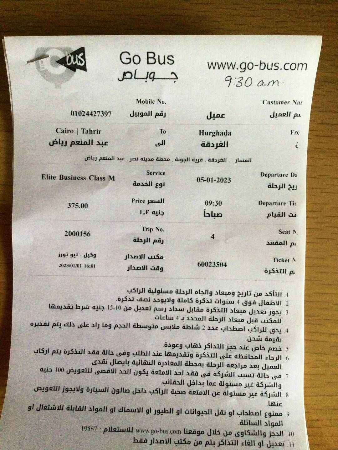 I forgot that Arabic is written right to left so when I saw the ticket, I thought that it said that it was a ticket for Cairo to Hurghada!
