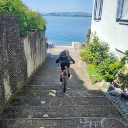 Weil der Papa Termine in der Stadt hat, sind wir mitgefahren. Clemens hat die Abfahrt vom Berg mit dem BMX gemeistert- wir sind hinterher gefahren :-) das gibt Muskeln in den Oberschenkeln.