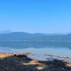 Ä Usflug a Quesnel-Lake, Flächi 266 km2, Längi 65 km u 605 m tief. 55 Min Outfahrt, aues Gravelroud. Gstobe wie veruckt.
