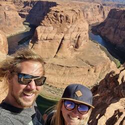 North & Central AmericaVoyageurAfficher le voyageAjouter à ma liste de choses à faireSupprimer de ma liste de choses à fairePartagerJour 54samedi 22 octobre 2022 à 12:40 ☀️ 23 °C Altitude: 1 293 m États UnisHorseshoe bend36.878333, -111.5136°52’42” N 111°30’36” WHorseshoe Bend 22 octobre 2022, États Unis ⋅ ☀️ 23 °C We visited Horseshoe Bend. We were basically just driving past it anyway! Voir la traduction6 j’aime Afficher le voyage