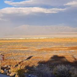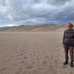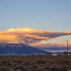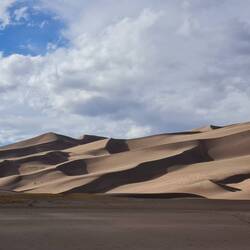 Wir fahren zum Great Sand Dunes National Park. Der Wind pfeift ununterbrochen aus Südwesten über die Hochebene und bringt seit über 100000 Jahren Sand aus den ausgetrockneten Seen und dem Rio Grande Tal an den Fuß der Bergriesen der Sangre de Cristo. Dort bleibt der Sand in einer 100 km² großen Sandkiste liegen. Die Dünen wirken, wenn man auf sie zufährt, durch die sich hinter ihnen auftürmenden 3-4Tausender unscheinbar klein. Als wir jedoch vor dem Sand stehen, verspüren wir, wer hier wirklich klein ist. Wir verzichten auf die Sandbergbesteigung.