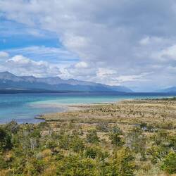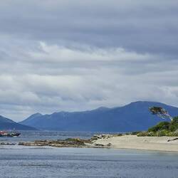 Vorbei an einem denkmalgeschützten Goldschürfbagger aus dem Jahr 1904 und nach einem morgendlichen Bad im kalten Lago Blanko erreichen wir diesen privaten Park. Über einsame Pässe und an malerischen Seen entlang, bieten sich Landschaften wie gemalt. Moore wechseln mit Südbuchenwald, im Hintergrund ragen die Andenkordilleren in den Himmel. In Maria Caleta, einem Ort der nur aus einigen baufälligen Wellblechhütten besteht, haben wir den Eindruck, am Ende der Welt zu sein: Windumtost stehen wir an einer Ausbuchtung der Magellanstraße.