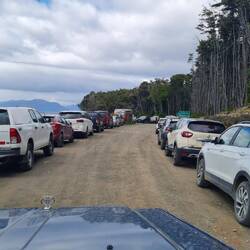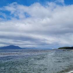 Sylvester wollen wir in El Chaltén sein. In Gedanken bin ich schon dabei ein Foto zu schießen, auf dem der Fitz Roy den Hintergrund für das Anstoßen zweier Gläser bildet. Es liegen zwar 1000km Asphalt, die Magellanstraße und die Grenze Richtung Chile sowie eine weitere zurück nach Argentinien auf der Strecke, aber in 2 Fahrtagen sollte es zu schaffen sein. Doch unterschätze nie den Wind auf Feuerland! Wir kommen zwar erst gut voran, aber vor dem Anleger der Schiffe Richtung Festland ist Schluss. Wir stehen im Stau. Die Fähre kann wegen des Sturms nicht fahren. Wie lange nicht? Vielleicht eine Stunde ... oder zwei. Vamos a ver ... . Am Ende warten wir sieben Stunden, haben es aber gemütlich windstill und dank Standheizung auch warm im Wagen.