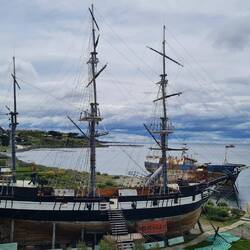 Wir durchstreifen Punta Arenas an der Magellanstraße und erkunden nahezu jeden Winkel. Im Norden der Stadt gibt es ein Museum detailgetreu nachgebauter, historischer Schiffe in Originalgröße. Die Nao Victoria, mit der Magellan im Jahr 1519 zu seiner dreijährigen Weltumseglung startete und in deren Verlauf er den nach ihm benannten Wasserweg durch die Inselwelt nördlich von Kap Horn entdeckte, wirkt wie eine Nussschale mit ihren nur 28 Metern Länge. Da ist die Beagle, auf der Charles Darwin als Wissenschaftler in den 1830er Jahren mitsegelte, schon deutlich größer und komfortabler. Immerhin gab es an Bord 2 Plumpsklos. (Der letzte Satz sagt wahrscheinlich eher etwas über Jörg und mein Gefühl zu "Komfort" aus.)