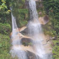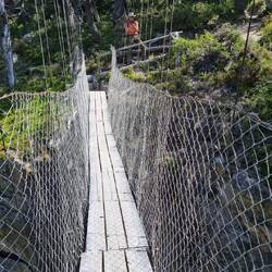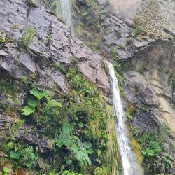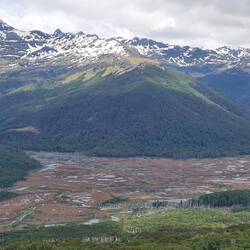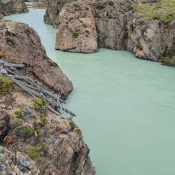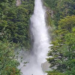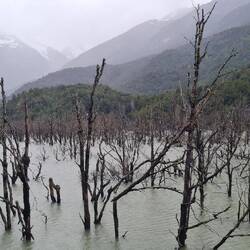Es plätschert. Es rauscht. Es schäumt. Links stürzen die Massen in ungezählten Wasserfällen den Hang hinunter, rechts lässt ein Bergrutsch den See über die Ufer steigen, über uns hat der Himmel seine Schleusen geöffnet. Das sehr ursprüngliche Exploradorestal, das von Puerto Tranquilo nach Westen führt, empfängt uns so nass, dass wir nur bis zu einer sehr schmalen Brücke fahren und dann umkehren. Die Wanderung wird auf den nächsten Tag verschoben. Den traumhaft am Fluss - aber einen Meter höher als das Ufer - liegenden Übernachtungsplatz können wir nicht draußen genießen - zu nass.