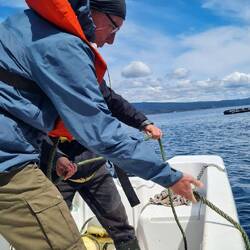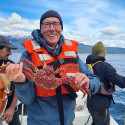 Etwas Besonderes wartet auf uns! Wir haben eine Königskrabbenfangfahrt mit Fischern und anschließendem Menü gebucht. Königskrabben sind eine kulinarische Spezialität am Beaglekanal. Es heißt, dass es Menschen gibt, die nur wegen der Krabben nach Ushuaia fahren. Wir werden sie so frisch essen wie kaum jemand sonst ... doch erst einmal machen wir uns selbst frisch für dieses Event. Der See ist kalt, doch es nützt nichts: Im Restaurant wollen den Ansprüchen genügen.