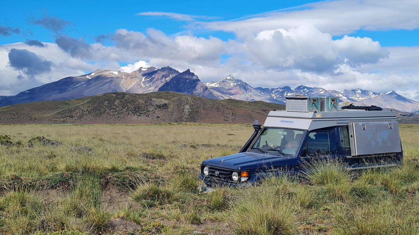 Wir suchen uns einen Campingplatz am Meer und untersuchen unseren dicken Blauen: Die Offroadstrecken und das Wellblech der Schotterstraßen haben ihm sichtlich zugesetzt: Das Frontlicht funktioniert nicht mehr, dafür riecht es nach verschmortem Plastik im Innenraum, wenn wir es anschalten. Das Radlager lässt von sich hören. Der Dieselzusatztank hat ein neues Leck. Die Reifen laufen unter der Bezeichnung "Slick". Die Frontscheibe verzeichnet 4 Einschläge, 2 davon mit größeren Sprüngen. Der letzte Motorölwechsel ist 15000km her, ganz zu schweigen vom Getriebeöl. Wir reparieren, was wir können und entscheiden in der nächsten größeren Stadt, Puerto Montt, einen Wellnessstopp für unseren Reisegefährten einzulegen. Bis dahin muss er noch durchhalten. Da Grobi willig ist, gönnen wir uns noch 2 Wanderungen, bevor wir die letzte Etappe nach Puerto Montt angehen: