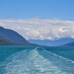 Um in Chile auf der Carretera Austral weiter Richtung Norden fahren zu können, müssen 2 Fähren genommen werden. Die Tickets dafür haben wir schon in Chaitén erstanden, an den Fähren selbst ist das nicht möglich. Wir genießen die Schifffahrt durch die Fjorde: Das Wasser leuchtet türkis, der Wald ist saftig grün, überall rauschen Wasserfälle die Berge hinab.