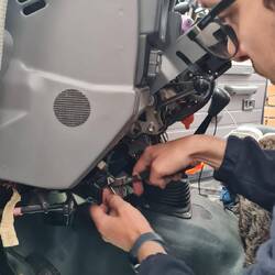 Es folgen in den nächsten Tagen: die Reparatur der Kabelverbindung zum Abblendlicht - liebenswerte Nerds gibt es auch in Chile; der Motorölwechsel - ein Venezuelaner macht Überstunden; das Auffüllen der kleinen Gasflaschen - in Chile illegal; das Auffüllen des Frischwassertanks - in einem Park und zum Schluss ein Besuch in einer 4×4 Werkstatt. Hier bleiben wir 2 Tage, damit Octavio, der immer fröhliche Besitzer, die Differenzialöle, die Getriebeöle und den Luftfilter in Ruhe austauschen kann. Radlager? Sind in Ordnung! Frontscheibe? Kann auch Octavio nicht herbeizaubern ... dafür aber einen ehemaligen Bankkaufmann, der auf Scheibenreparatur umgesattelt hat.