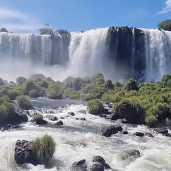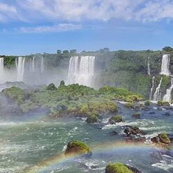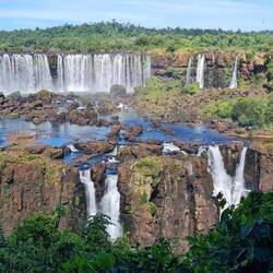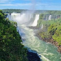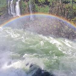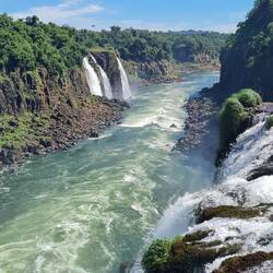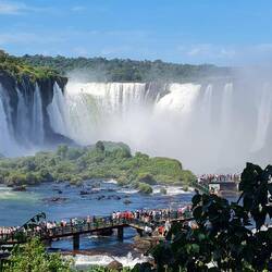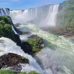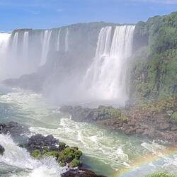 Wir haben auf Island beeindruckende Wasserfälle gesehen, haben die Niagarafälle bestaunt und viele kleinere Wasserfälle erwandert - in Europa wie in Amerika. Alle waren auf ihre Weise schön. Doch das, was wir im Dreiländereck Paraguay, Argentinien, Brasilien zu sehen bekommen, schlägt alle anderen Wasserfälle um Längen. Eingebettet in seine natürliche Umgebung rauschen die Wassermassen über 2,7 km Länge in die Tiefe. Höhepunkt ist der Teufelsschlund, in den das Wasser von 3 Seiten stürzt. Wir stehen und staunen ... .
