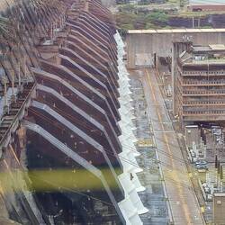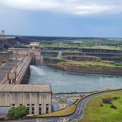 Vom 3-Schluchten-Staudamm hatten wir schon einmal gehört. Aber vom Wasserkraftwerk Itaipú Binacional? Noch nie! Dabei war es bis zur Fertigstellung des chinesischen Projekts im Jahr 2006 das größte Wasserkraftwerk der Erde mit einer Megawattleistung von über 14.000 MW - vergleichbar mit der Kraft von 12 Atomkraftwerken. Bereits 2 der 20 Turbinen haben pro Sekunde mehr Wasserdurchlauf als die nahegelegenen Iguaçu-Wasserfälle. Der entstandene Stausee hat eine Länge von 170 km (die Breite beträgt bis zu 12 km, variiert jedoch stark). Bei Inbetriebnahme füllte sich das Tal innerhalb von 14 Tagen. Wasserfälle noch größer als Iguaçu versanken in den Fluten.