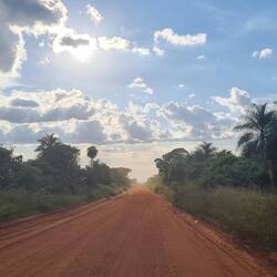 Nordwärts, immer nordwärts, über Land, mal mit Asphalt, mal ohne. Riesige Maisfelder, Maniok, Soya. Wir gönnen uns einen Stopp am Stausee - ohne die Warnung vor Piranhas könnte man meinen, wir wären an einem sehr heißen Tag am Westensee. Und weiter ...