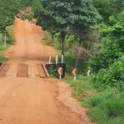 Seit Curitiba habe ich Jörg auf den Beifahrersitz verdonnert, damit er seinen Fuß hochlegen kann. Da ich des Fahrens auf asphaltierten Straßen mit überholendem LKW-Verkehr überdrüssig bin, sucht Jörg besonders schöne, kleine bis winzige Wege durch die Tiefebene, die uns dann auch an Furten führen. Es ist kein Wunder, dass die Strecke schließlich nur noch Treckerspuren aufweist, normale Fahrzeuge scheitern bei 60 cm Wassertiefe.