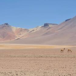 Die Zivilisation ist ein ferner Traum. Über Tage sehen wir keine anderen Lebewesen als Vicuñas, Flamingos und - selten - Bergviscachas. Es herrscht Wüstenlandschaft.