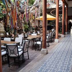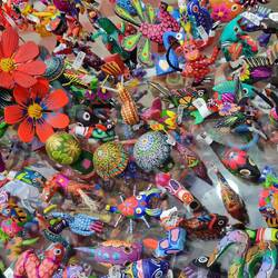 Am nächsten Tag besuchen wir Oaxacas Innenstadt mit dem Taxi - nach Empfehlung Tonys. Dies erweist sich als guter Rat, denn es gibt keine Parkplätze. Wir schlendern durch Galerien, Handwerksläden und die Kirche. Ich kämpfe mich durch eine Mole negro, das kulinarische Markenzeichen der Stadt: Eine schokoladig-braune rauchig-scharfe Soße, die über Fleisch und Reis gegossen wird. Sie macht auf jeden Fall satt.