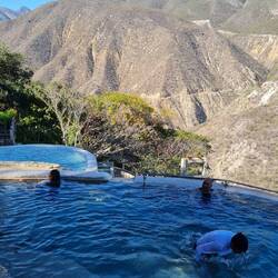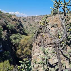 Zuerst also die Grutas Tolantongo, deren heutiger Name wahrscheinlich aus einem Schreibfehler herrührt. Ursprünglich hieß die Grotte samt Fluss Tonaltongo, ein Name aus der indigenen Sprache Nahuatl, der mit "wo man sich warm fühlt" übersetzt werden kann. Das passt sehr gut, denn das Wasser im Fluss und in den Becken ist durch natürliche Gegebenheiten angenehm warm. Ein Journalist, der dieses kleine Paradies in einer Zeitschrift 1975 beschrieb, verwechselte 2 Buchstaben. Seitdem heißt die Schlucht Tolantongo.