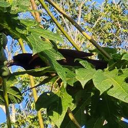 Wir lassen den nächsten Tag ruhig angehen, baden unbekleidet im Fluss und frühstücken in aller Seelenruhe. Während wir abends noch Fledermäuse über unseren Köpfen beobachten konnten, sehen wir jetzt eine Horde Affen in den Bäumen und jede Menge Leguane. Die "Einheimischen" der letzten Nacht entpuppen sich als zwei europäisch anmutende Frauen, die jedoch schon aufbrechen, bevor wir Kontakt aufnehmen können.