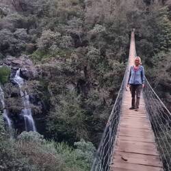 Der Verdauungsspaziergang führt uns an eine heftig schaukelnde Hängebrücke mit Blick auf einen Wasserfall: Wildromantisch! Erst nach Sonnenuntergang sind wir wieder am Wagen und lauschen im Bett liegend den Klängen einer mexikanischen Band (mit Tuba und Zieharmonika), die bei einem Fest in der Nähe aufspielt: Südtiroler Musik mit spanischem Text. Sehr lustig! Czytaj więcej