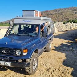 Es ist Montag ... Werkstatttag! Wir rechnen mit maximal einer Übernachtung und der Weiterreise am Dienstag, aber während der OP stellt sich heraus: Grobi hat ein ernsthaftes Schultergelenksproblem! Er braucht beidseits zwei neue Gelenke. Eine einfache Knorpelglättung reicht nicht. Die beiden Operateure machen noch eine Gelenktoilette, säubern jedes noch so kleine Teil und verlassen dann das Operationsfeld. Grobi bleibt mit offenen Schultern zurück, zum Glück blutet er nicht. Selbstverständlich bleiben wir in seiner Nähe! Er soll spüren, dass wir ihn in dieser Situation nicht allein lassen. Denn Endoprothesen für unseren Gefährten zu bekommen, gestaltet sich schwierig. David, der Werkstattleiter, verbringt Stunden am Computer und Telefon. Wir betätigen uns indes als Krankenschwestern: Waschen den Patienten gründlich von Innen, kontrollieren den Energiezustand, hängen ihn an den Solartropf und entdecken eine Undichtigkeit im Kühlkreislauf - nicht, dass Grobi auch noch Fieber bekommt. Endlich, am Mittwoch, erhalten wir die erlösende Nachricht: Die OP kann am Freitag zu Ende geführt werden, morgens früh sollen die Prothesen geliefert werden.