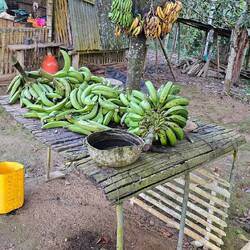 La finca de la familia de Juan Carlos y Chari tiene una gran plantación de plátanos, algunas vacas y gallinas. El negocio del plátano no es fácil debido a la caída de los precios. Los plátanosLæs mere