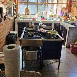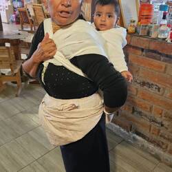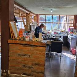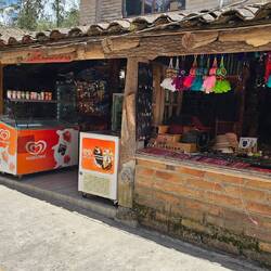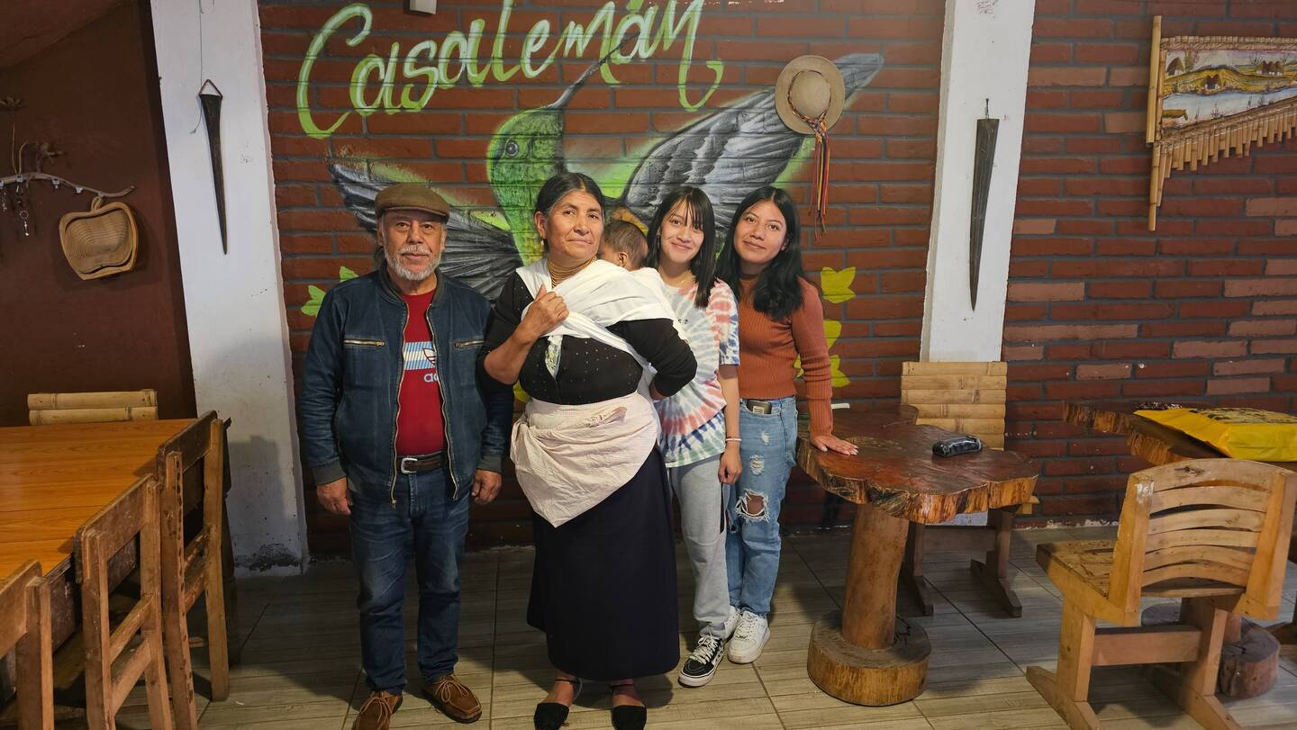 La casa de la familia Alemán, Manuel y Estela, se encuentra en la aldea de Cascada de Peguche, justo antes de la entrada al bosque. La familia regenta una pequeña tienda para los turistas que pasanLæs mere