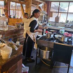 En Tena, Sami y yo fuimos recibidos por Fanny y José. José había comprado botas de goma de la talla 47. Para comer fuimos al mercado de Tena. Después, media hora en camioneta hasta la casa deLæs mere