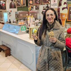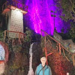 Ruby me acompañó a la cascada por la noche. Está iluminada con muchos colores. Después nos tomamos un helado en la heladería favorita de Ruby.