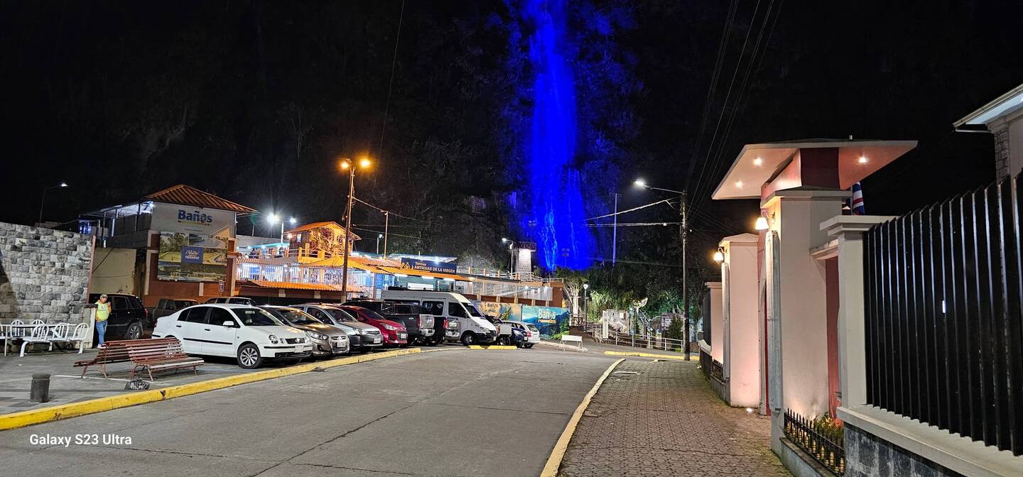 La ciudad está ubicada al pie del volcán Tungurahua (5016 m.s.n.m.), muy activo, en el valle alto del Pastaza, en la vertiente de la Cordillera Oriental Andina a 1820 m.s.n.m. Tiene un climaLæs mere