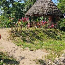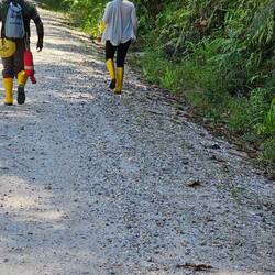 Hoy vamos de excursión a 2 cascadas. El equipo era un casco, botas de goma, agua y una cuerda. La caminata fue de unos 4 km con mucho calor. Pasamos por algunas casas más de la comunidad indígenaLæs mere