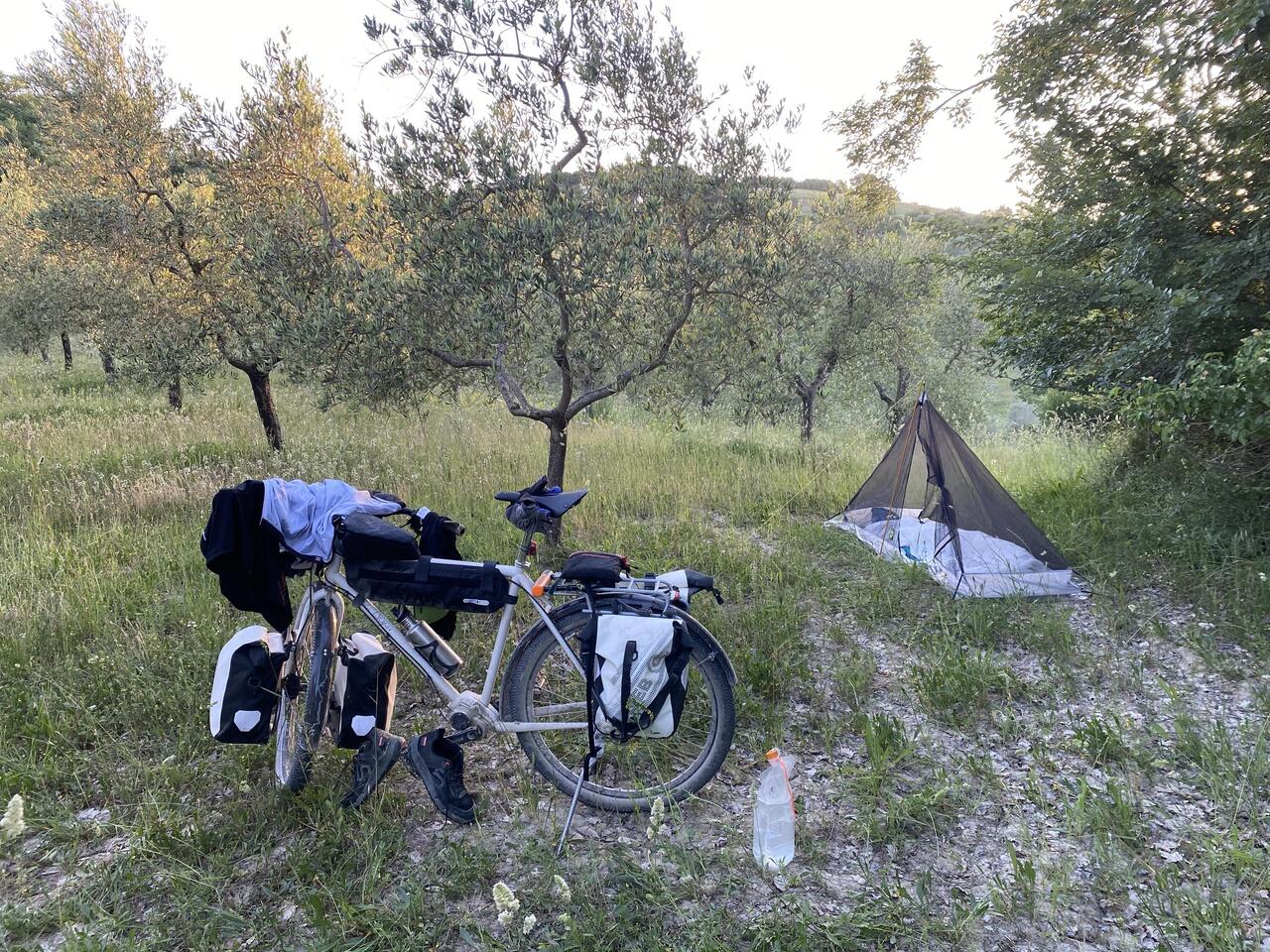 Die Nacht habe wieder in einem Olivenhain verbracht und ungestört geschlafen. Morgens ist es immer etwas mühsam die Muskeln wieder zur Arbeit zu bewegen, aber die Landschaft belohnt…