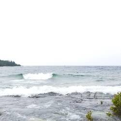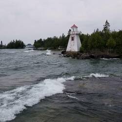 Little Current is a nice little town with a fishing harbour and many tourist attractions. We enjoyed looking at the unique fishing boats in the harbour and found out there was a salmon fishing derby on...$1200 for the biggest fish...mom joked about entering but we decided it'd be best to pass. We toured around the cute town with its patios and souvenir shops and explored along the shoreline where we got soaked by some genuine Georgian Bay waves. We were getting hungry at this point and after asking around we were referred to a small family restaurant called "Carol and Earl's Restaurant". Our experience there was absolutely wonderful! Excellent and friendly customer service, huge portions and delicious food to boot! After seeing everything there was see in the bay, we headed back to the campground.