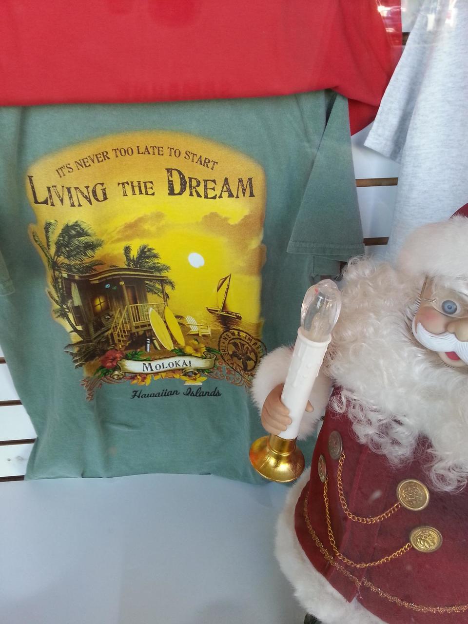 Seems I didn't take many photos the next day...just one of a t-shirt in a downtown store, and the Christmas decorations outside a house that backs onto the property where my studio is located.