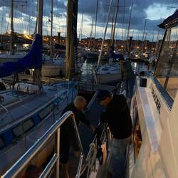 …. in Saint Malo, Schiff übernommen und das erste Z‘Nacht an Bord