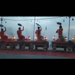 Ich genieße es, die sehr hingebungsvolle Musik zu hören und die Bewegungen, die Lichter der Öllampen und die vielen Zuschauer*innen, die an den Treppen des Ghats sitzen, zu sehen. Da geht mir das Herz auf. Wunderschön! Wieder einer der Momente wo ich kaum glauben kann, dass ich sie gerade erlebe.❤️🙏