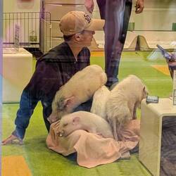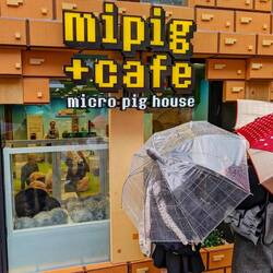 Neben sehr viel bunt und süß in der Nase war unsere besondere Attraktion ein Mini-Schwein Café. Also eine japanische Variante vom Miezhaus. 😁