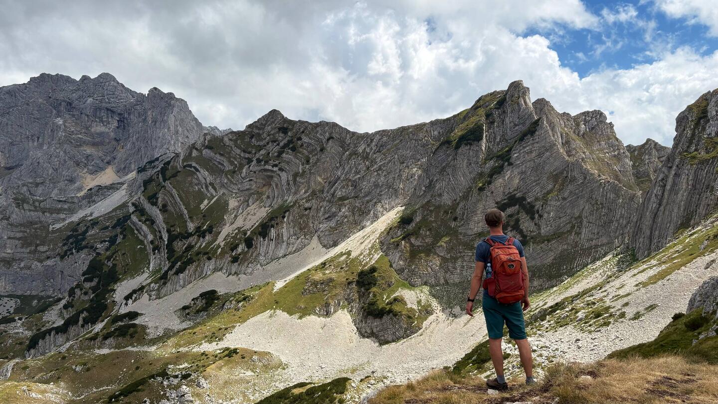 Na een harde nacht op matrassen die dringend aan vervanging toe zijn doen we ons tegoed aan een typisch Montenegrijns ontbijt. Filet de Sax, tomaat, komkommer en een omeletje. Met de magen goed gevuld rijden we terug het Durmitor NP in. We laten onze auto achter op een kleine parking wanwaar we de Prutas (2401m) gaan beklimmen. We beginnen met de wandeling en al vrij snel zijn we omgeven door Belgen en Nederlanders. Het lijkt of zij de enigen zijn die Montenegro bezoeken. We zetten er een stevige pas in en steken meteen een paar groepjes voor 💪. Na een steile klim bereiken we een eerste zadel waar we beloond worden op een prachtig uitzicht. In de rotsen voor ons zien we hoe de aardlagen geplooid zijn. Magnefiek! Nadien volgt nog een lichte klim tot aan de top waar we lunchen in het zonnetje. ☀️
