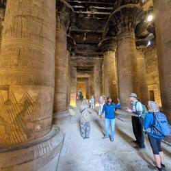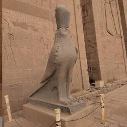 The temple, dedicated to the falcon-headed god Horus, is one of Egypt's best-preserved, largely because it lay buried in sand for centuries. As I walked into the vast courtyard, flanked by gracefulLeggi altro