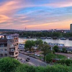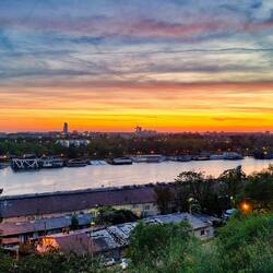 Beautiful sunset over the Sava river seen from the Belgrade fortress.