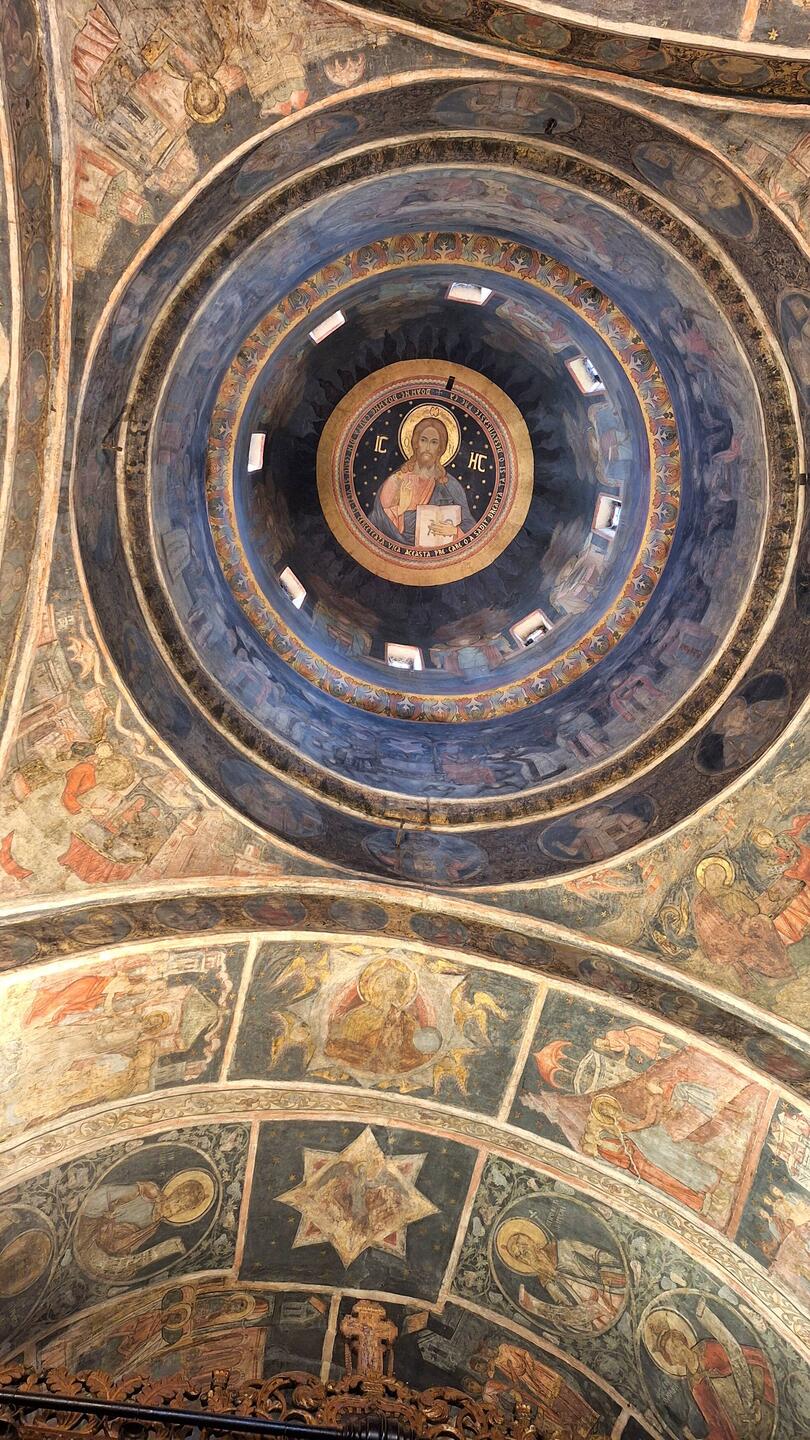 In the photos, the interior decorations of the Biserica Stavropoleos.