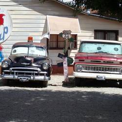Une des nombreuses étapes typiques de la Route 66 avec ses vieilles voitures et ses anciennes stations-services.