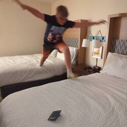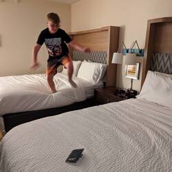 Got to the hotel! Explored, and the kids burned some energy!