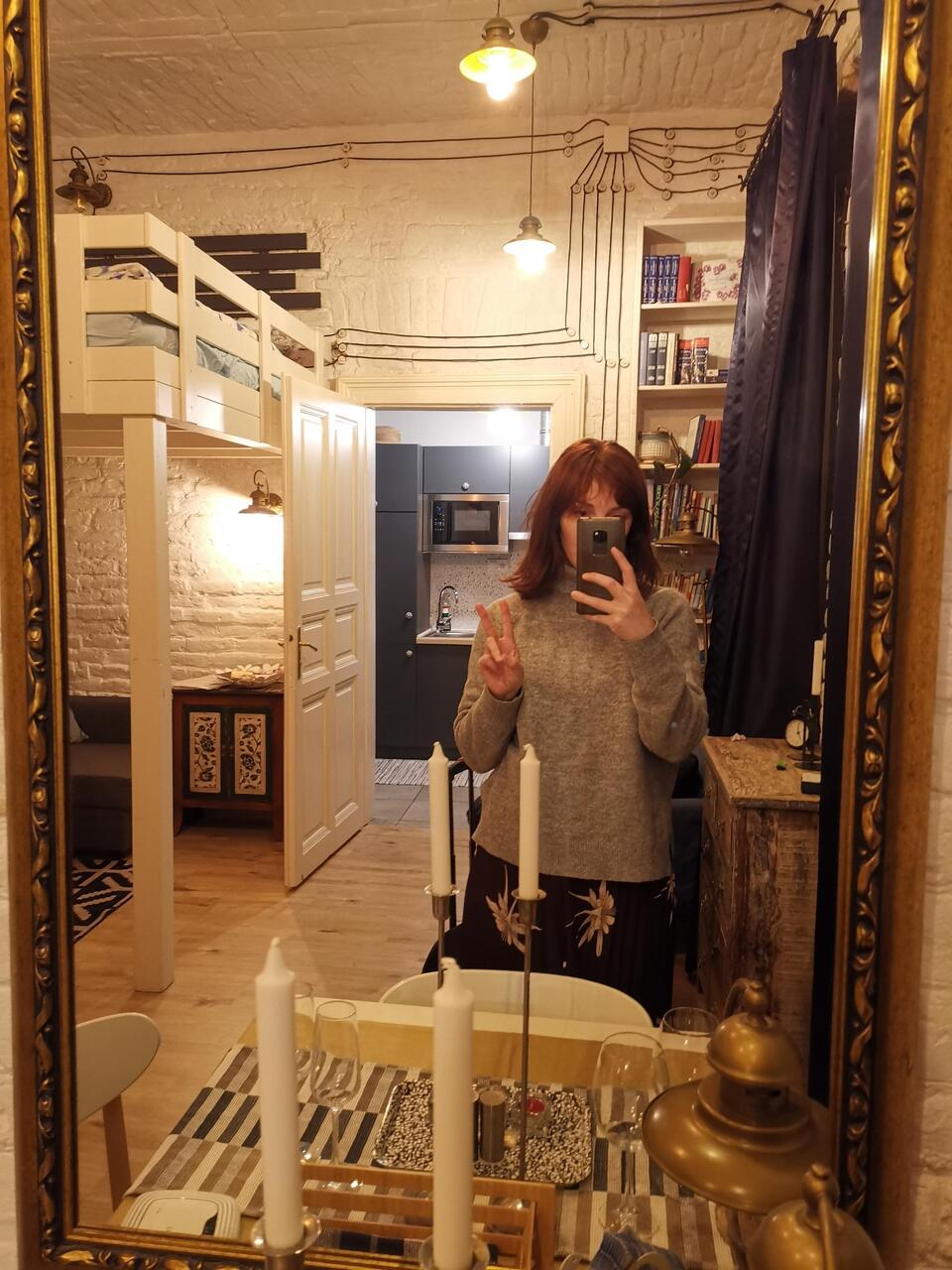 Ha! Took me a minute to work out you were in front of a mirror. Tiny place looks lovely - F