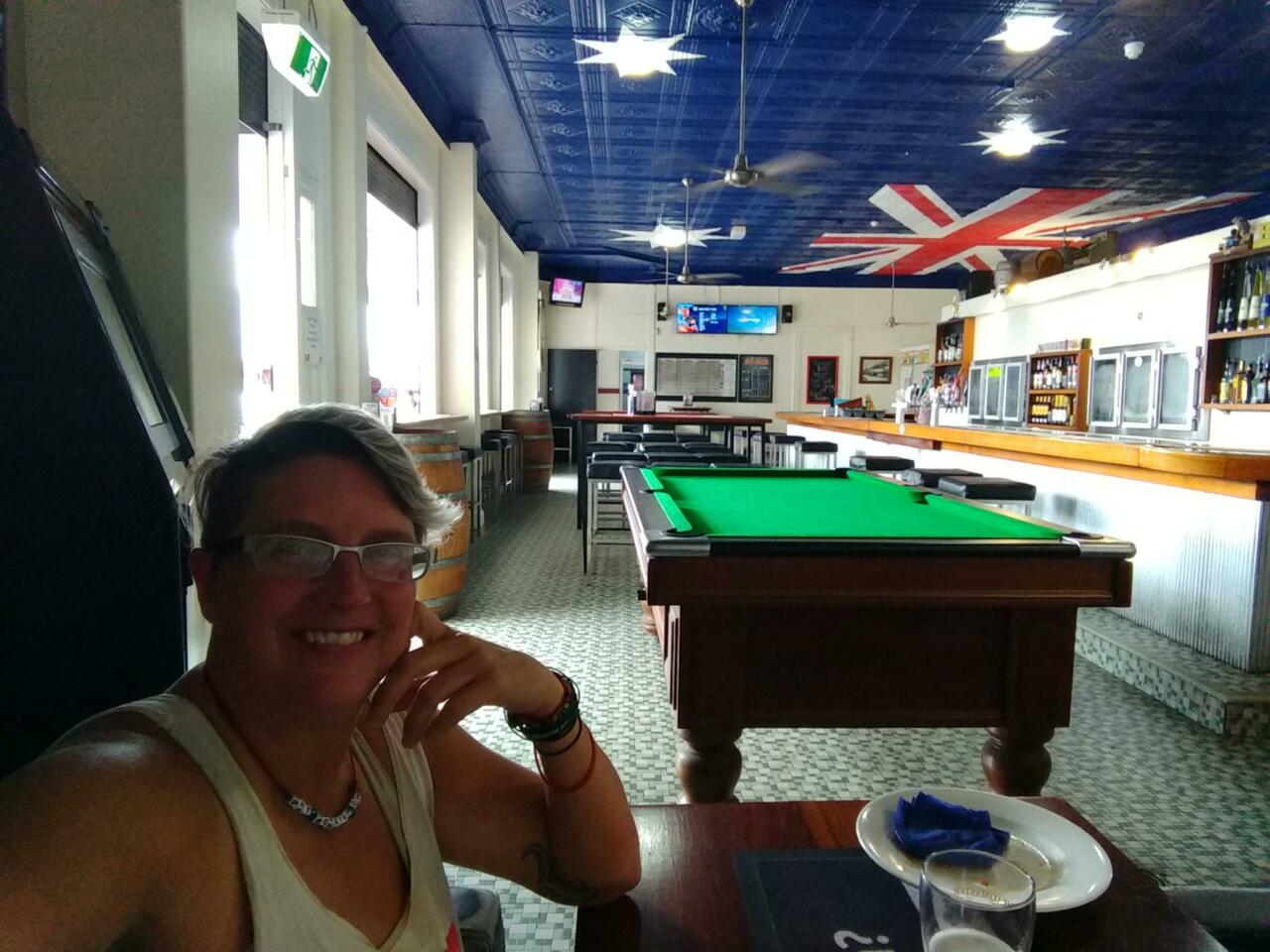 This morning, I caught the hostel shuttle to the bus stop and the Greyhound back to Tully. I'm at the Mt. Tully Hotel pub using their electrical sockets and having an inexpensive roast turkey sandwich with chips/french fries. Yummy.