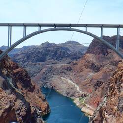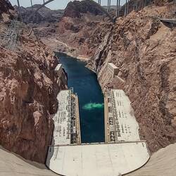 We stopped at the Welcome to Vegas sign first, and unbelievably there was no one there. Well, it was 07:45 on a Saturday morning. In Vegas. Our next stop was the Mike O'Callaghan–Pat Tillman Memorial Bridge to enjoy a dam beautiful Dam overlook while straddling the border of Nevada and Arizona. Cool. If you're driving a car on the bridge, you can't see anything, so park here if you go: https://maps.app.goo.gl/gQAZg5Y8kNafaQiPA